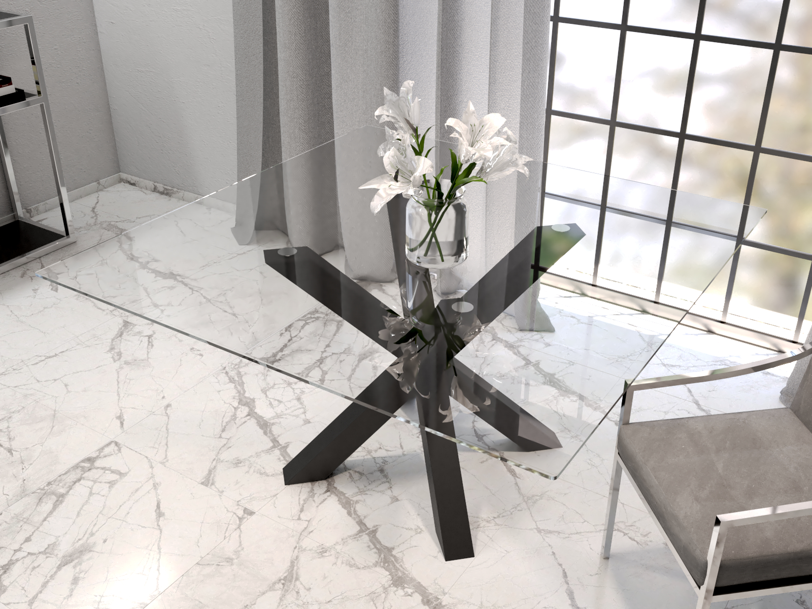 Base de table sous le plateau en verre Spider S